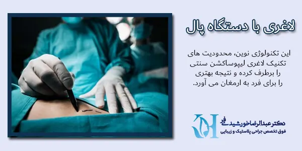 یکی از شناخته شده ترین پروسه های پیکرتراشی و لاغری با دستگاه پال می باشد. این تکنولوژی نوین، محدودیت های تکنیک لاغری لیپوساکشن سنتی را برطرف کرده و نتیجه بهتری را برای فرد به ارمغان می آورد. لاغری با دستگاه پال یکی از پرکاربردترین تکنیک های پیکرتراشی نزد جراحان پلاستیک محسوب شده و در برداشتن چربی ها، بسیار مؤثر است. دکتر خورشیدی فر فوق تخصص پلاستیک، با بهره گیری از این تکنولوژی، اندامی زیبا را برایتان خلق می سازد.